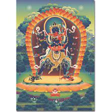 INFORMATION: The tantric form of Heruka Buddhist equivalent of the Hindo god Siva Nataraja. His Sakti is Nairamata or Vajravarahi and he may appear dominating the four Maras (the Hindu gods Brahma, Visnu, Siva and Indra).