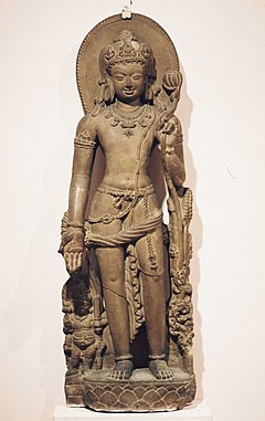 INFORMATION: These are thought to be a syncretization of Hindu and Buddhist deities and include such gods as Siva, Visnu, and others which have come to be defined as forms of the primeval buddha or Dhyanibuddha. The lokesvara are usually represented by a small figure, identified as Adibuddha or Amitabha, which rests on the head of the main statue. Also a group name for the many forms of the Buddhist deity Avalokitesvara.