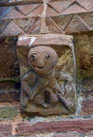 INFORMATION: The primal earth mother closely associated with life and death. One of the rare depictions of Irish Celtic deities that have survived into the Christian era. She is shown naked, with large breasts, with her legs apart and holding open her vagina. The image frequently adorns the walls of Irish churches. Also Sheila na Cioch.