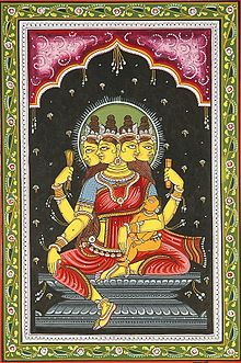 INFORMATION: A Sakti who in later Hinduism became one of the group of eight astamataras or mothers. In another grouping one of nine navasaktis or mothers. She is attended by a goose and wears a yellow robe. Also Brahmi.