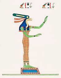 INFORMATION: Wadjet takes the form of a fire-breathing cobra and, as the uraeus symbol worn on the headdress of the ruler, she epitomizes the power of sovereignty. She is a goddess of Lower Egypt equating to Nekhbet in Upper Egypt, with her main cult center at Buto (Tell el-Farain) in the Nile delta. She forms an integral part of the symbolism of the sun god Re, coiling around the sun disc to symbolize Re's powers of destruction. According to mythology she created the papyrus swamps of the delta. She is described as a wet nurse to the god Horus and is the mother of the god of the primeval lotus blossom, Nefertum.