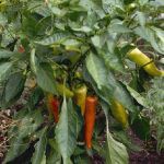 Scotch Bonnet Is a large-leafed cultivar with fiercely hot, crumpled, beret-shaped fruits that mature red, orange, yellow, or white. Height: 1.1m (3¼ft)