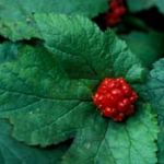 Deciduous perennial with a yellow rhizome and roots, and palmate, deeply-toothed leaves, 12-20cm (5-8in) long. Tiny flowers with green-white stamens appear in clusters in spring, followed by red, inedible fruits.