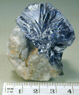 Molybdenite, which is a soft, dark silvery-gray mineral, is the primary source ore for the metal molybdenum. It occurs in a number of different forms from thin sheet-like crystals to granular or massive structures. It is composed of Molybdenum Disulphide, which is an industrially important lubricant, and can also contain significant amounts of Rhenium. Consequently, it is a valuable resource, and is mined in many places prominent localities include the United States, Canada, Norway, and Cornwall in England. It is often found in association with the minerals anhydrite, pyrite, wolframite, chalcopyrite, quartz, fluorite, and scheelite, but is sometimes mistaken for graphite.